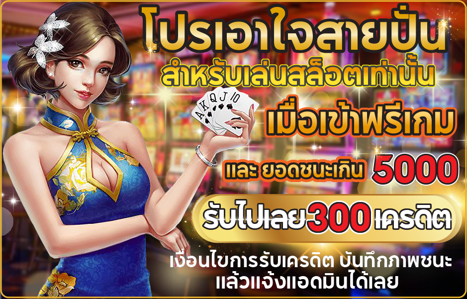 -เข้าฟรีเกม และชนะเกิน 5000 รับเครดิต 300 บาท (ต้องแตกในชอตเดียว5000ขึ้นไป จึงสามารถรับโปรนี้ได้ )